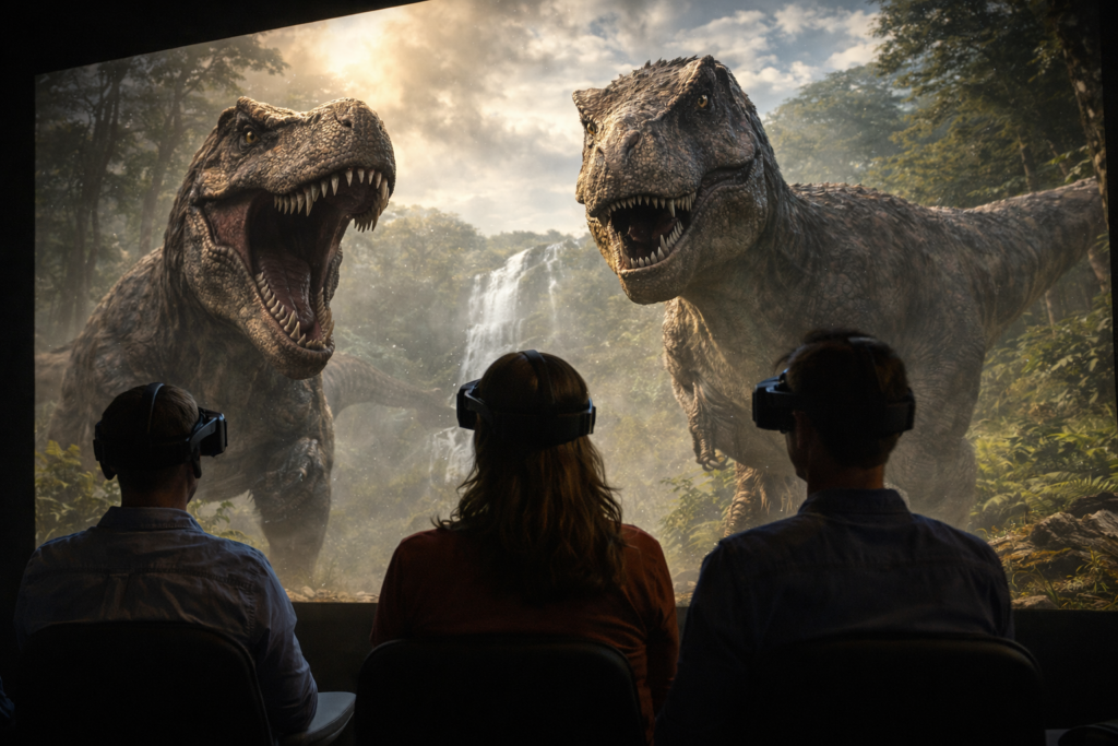 視界を包み込む構造により、一般的な映画館では味わえない没入感を実現しています。